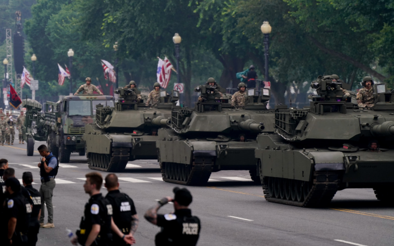 Members of the military in tanks during the US Army’s 250th Anniversary Parade in Washington, DC, in June 2025. One reason for America’s success was that its economic system and military might were sufficient to protect it from the Soviet challenge